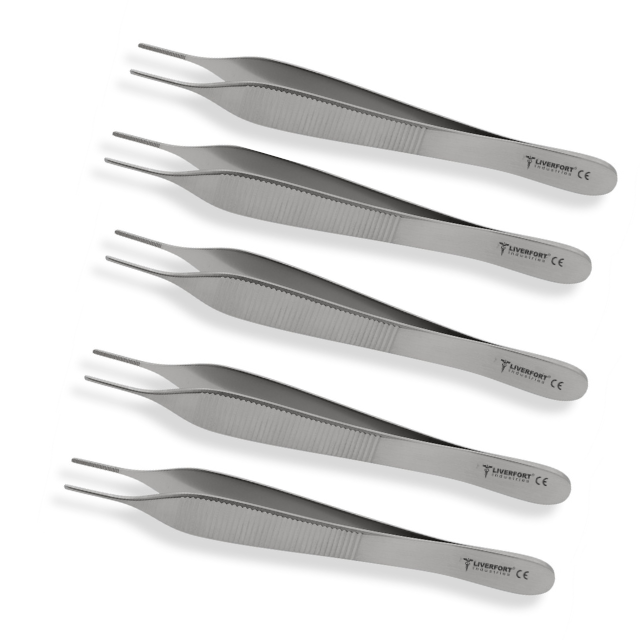 5 Pinzas Micro Adson Sin Dientes de 12cm