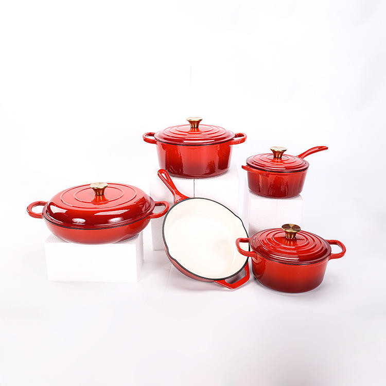 Juego de hierro fundido esmaltado Premium de 5 piezas, cacerolas no tóxicas, sartén, Apto para lavavajillas, para cocina familiar