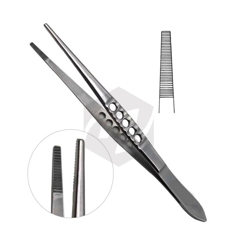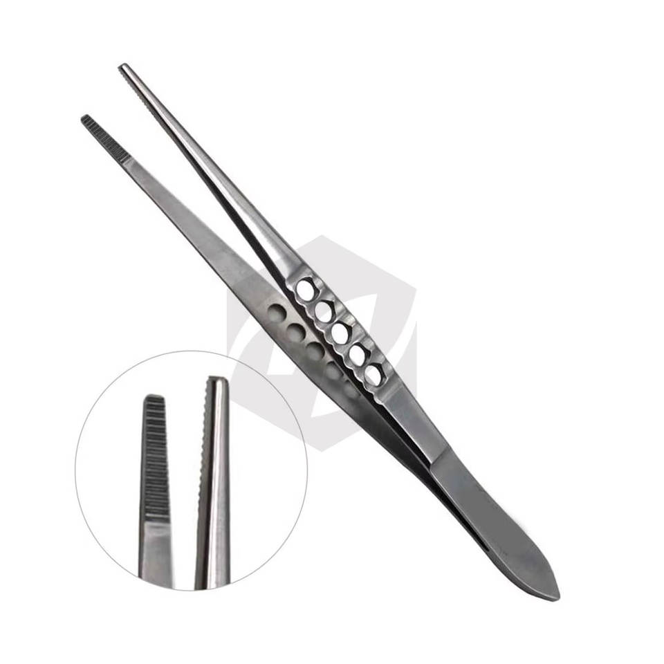 Pinzas quirúrgicas manuales premium de 6 pulgadas para tejido, instrumentos médicos con puntas serradas y mango fenestrado, que cumplen con MOL