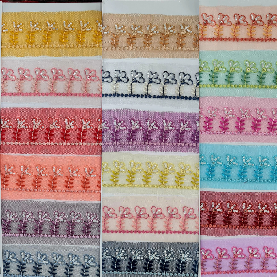 Borde de hilo de viscosa con adorno de encaje de red de mariposa bordado Premium de 9 metros para saris Lehengas bolsos nupciales tradicionales de lujo