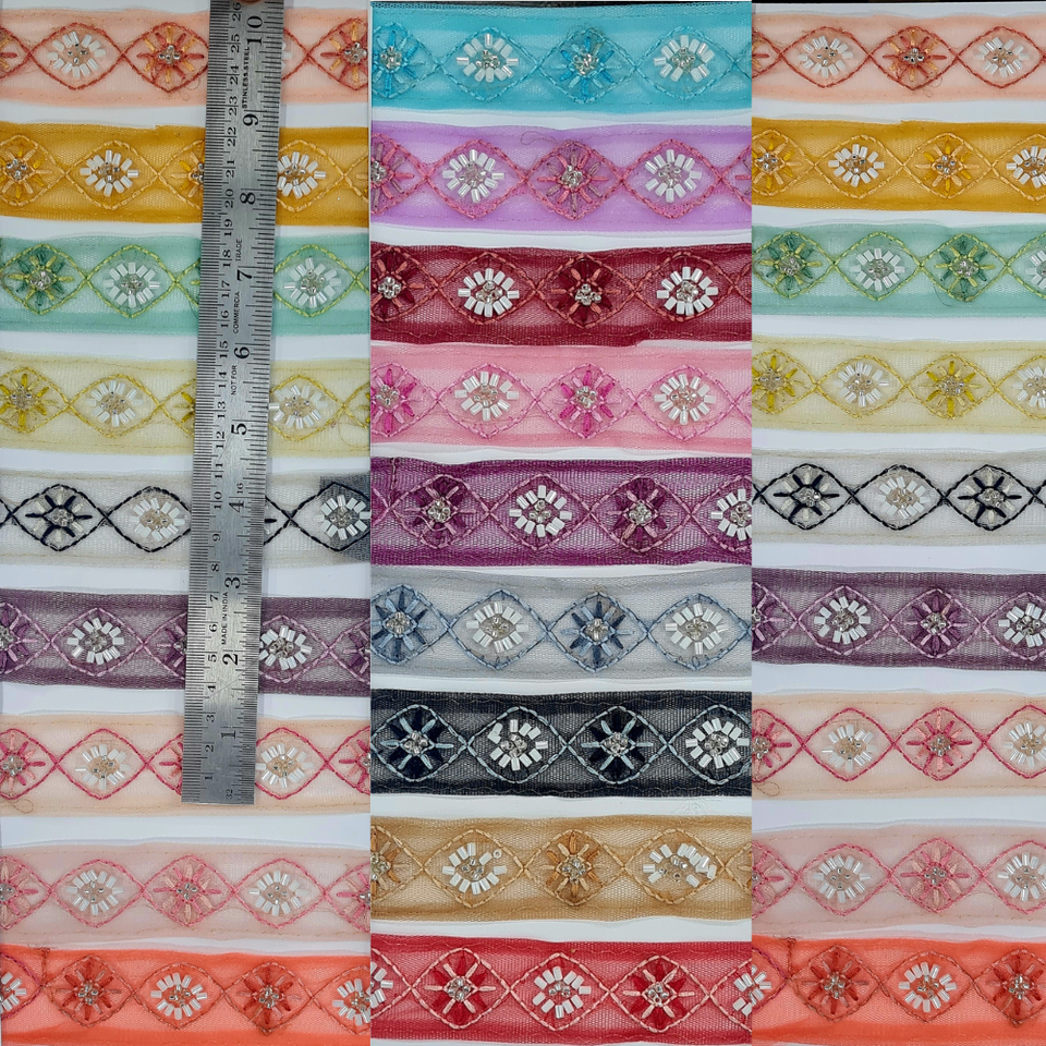 Premium 9 metros bordado mariposa red encaje ajuste encaje francés hecho a mano hilo de viscosa borde lujo tradicional Sarees bolsas