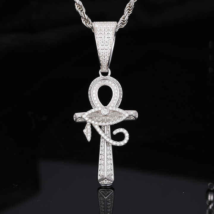 Colgante de Cruz de Plata de Ley 925 de Primera Calidad, Estilo Hip Hop Rapero, con Incrustaciones de Diamantes Redondos de Corte Brillante VVS1