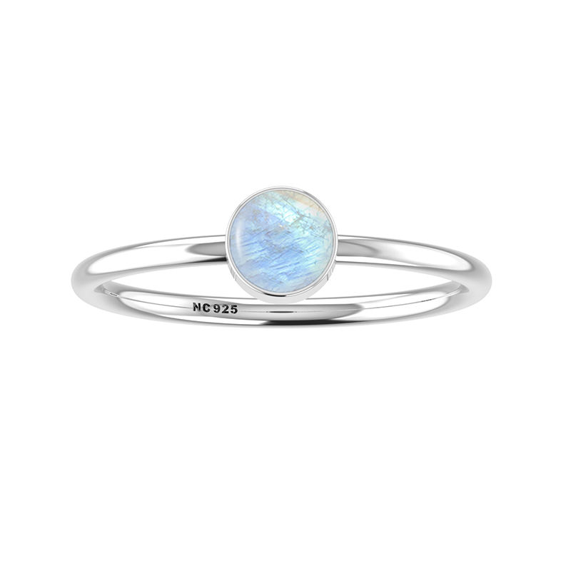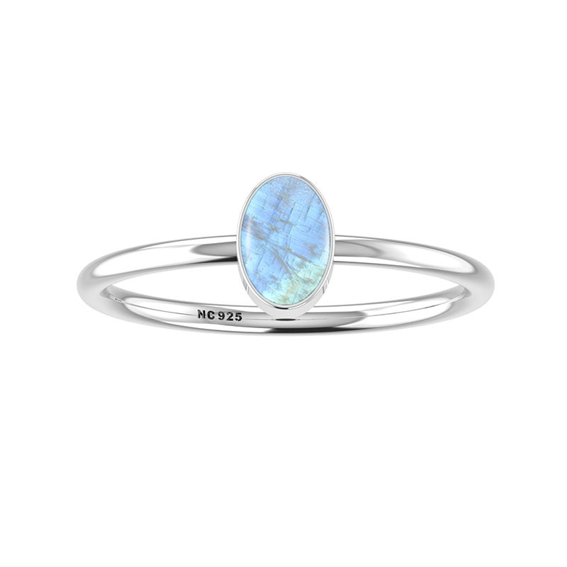 Anillo Apilable de Plata de Ley 925 de Primera Calidad con Engaste de Bisel Liso, Piedra Lunar Arcoíris, Gema en Forma de Pera, Ovalada y Redonda para Mujer