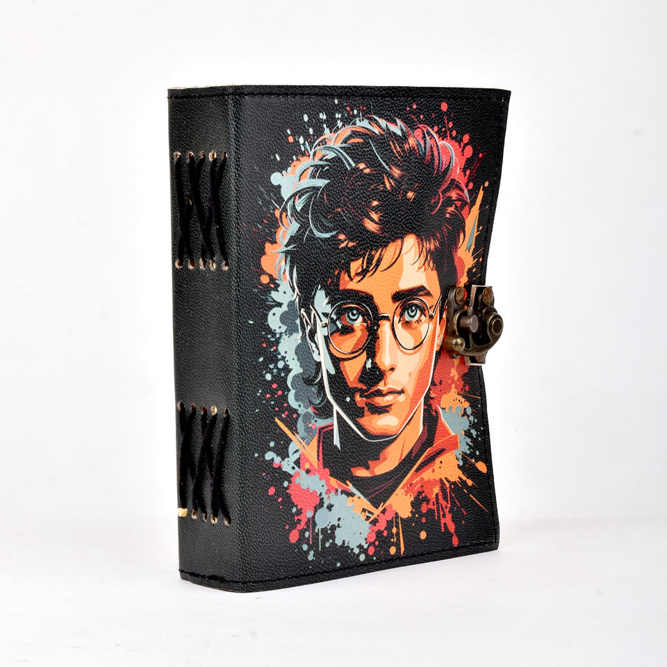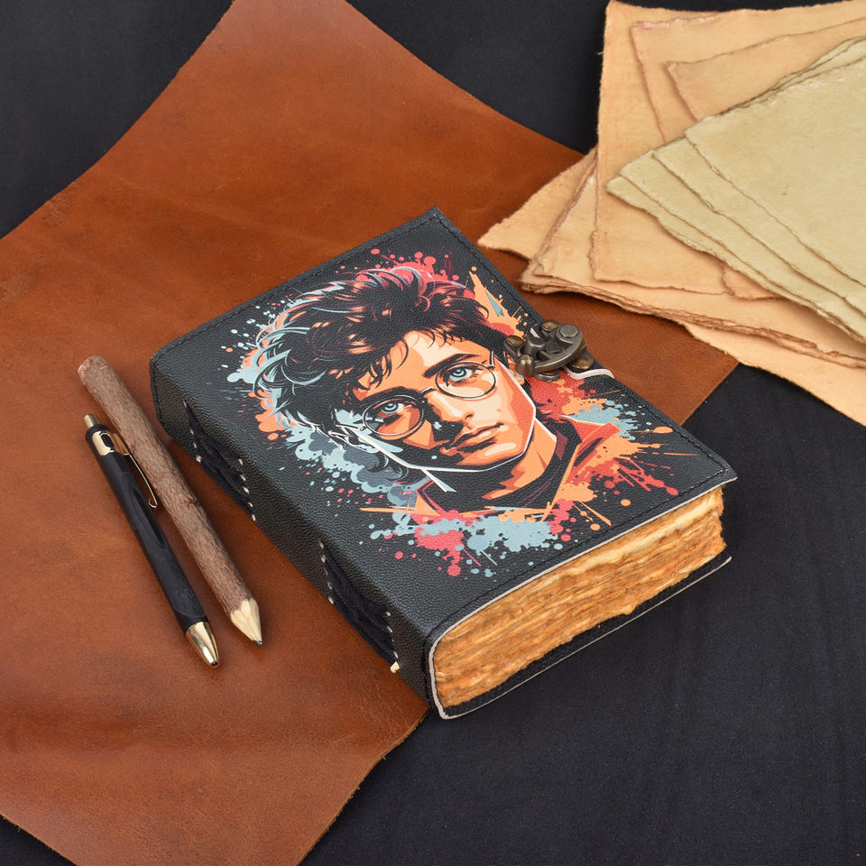 Cuaderno de Papel Hecho a Mano Premium A5, Cubierta de Cartón con Diseño Artístico de Retrato de Chico, 100 Páginas | Diario Ecológico con Cierre Metálico
