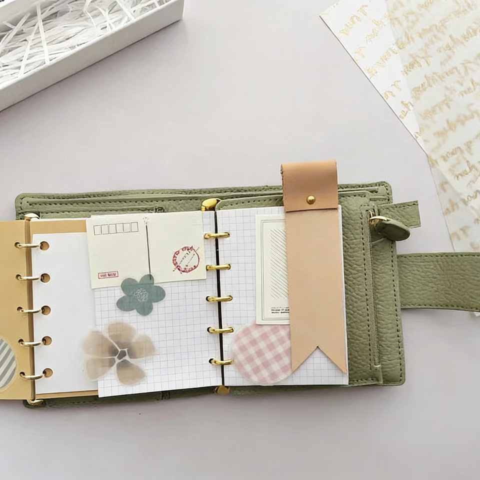 Agenda Premium A6 con Anillas, Personalizable con Logotipo, Recargable, con Hojas Sueltas, Organizador Multibolsillos para Oficina y Uso Personal