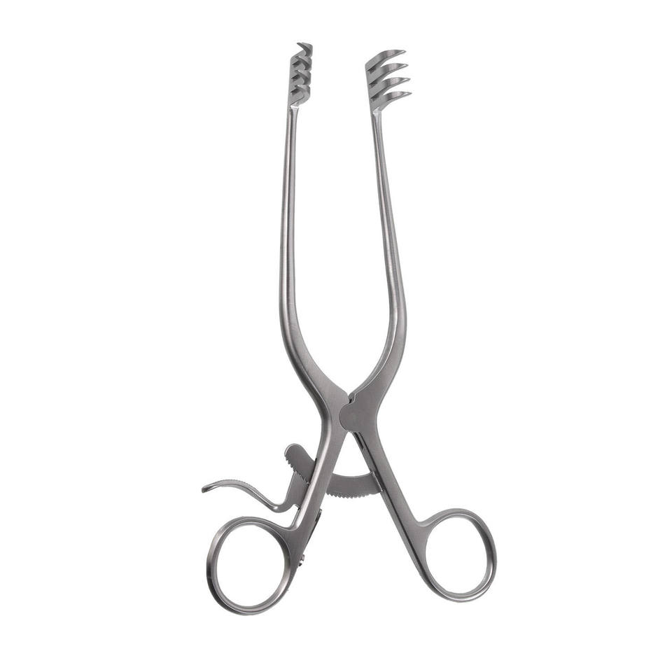 Retractor de cerebelo Adson premium, ángulo agudo, longitud 190 mm, 4/4 puntas, afilado, no estéril, juego de instrumentos de acero inoxidable