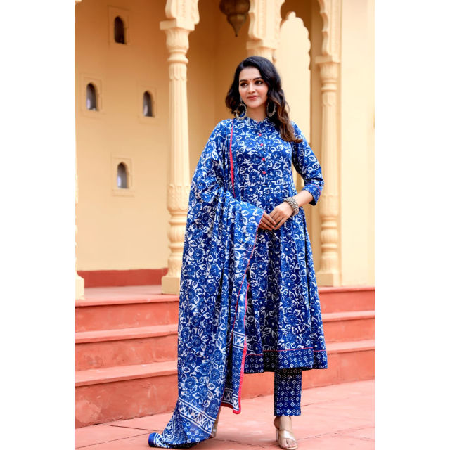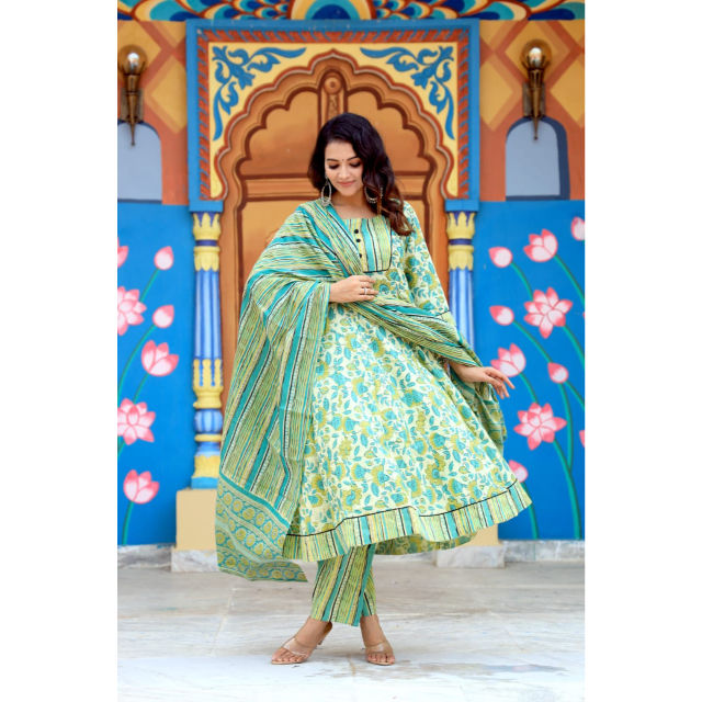 Conjunto Anarkali Premium con trabajo hecho a mano detallado y dupatta de gasa suave Conjuntos Anarkali de diseñador con espejo y trabajo de lentejuelas