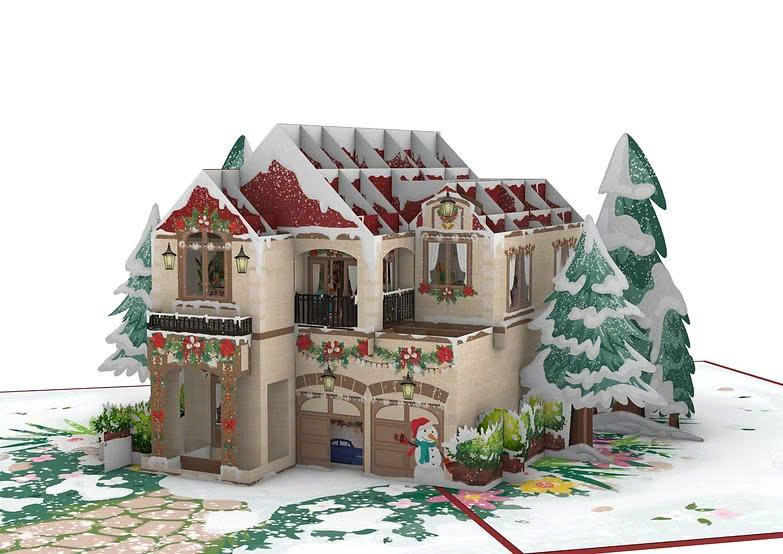 Papel DE ARTE Premium 3D Pop Tarjetas de felicitación Barnizado mate Diseño de mansión de Navidad 127x178mm Offset/Impresión digital Fábrica alta