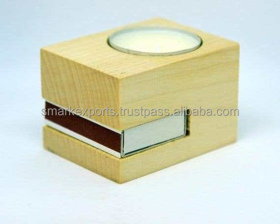 Candelero de madera hecho a mano artesanal de primera calidad con aspecto rústico de toque indio para decoración del hogar centros de mesa de boda y soporte de Metal