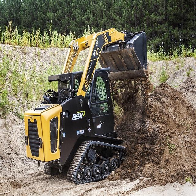 Cargadora de orugas Asv Rt 65 1C premium, diseñada para trabajos de construcción, con motor potente, bomba hidráulica y estructura duradera.