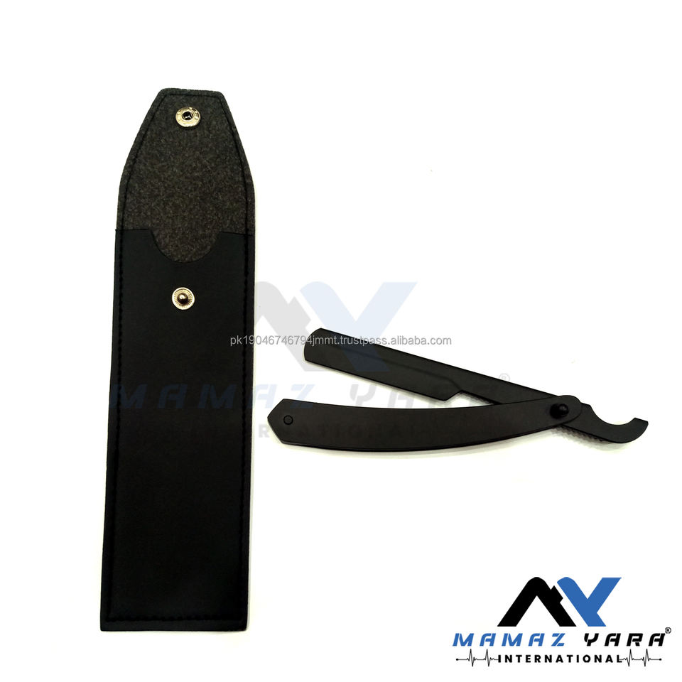 Maquinilla de afeitar turca de peluquero Premium en elegante acabado negro mate con bolsa de cuero-Maquinilla de afeitar recta de garganta cortada para un afeitado preciso