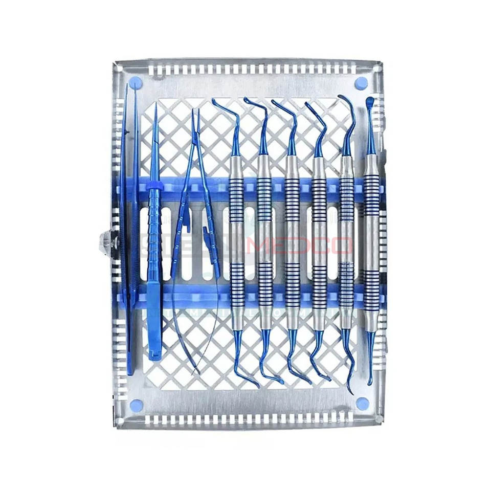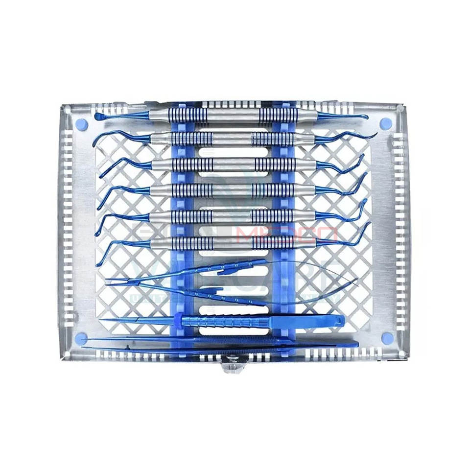 Premium Basic Micro Oral Surgery Kit Titanium Blue Juego de cirugía periodontal con instrumentos de llenado compuesto dental
