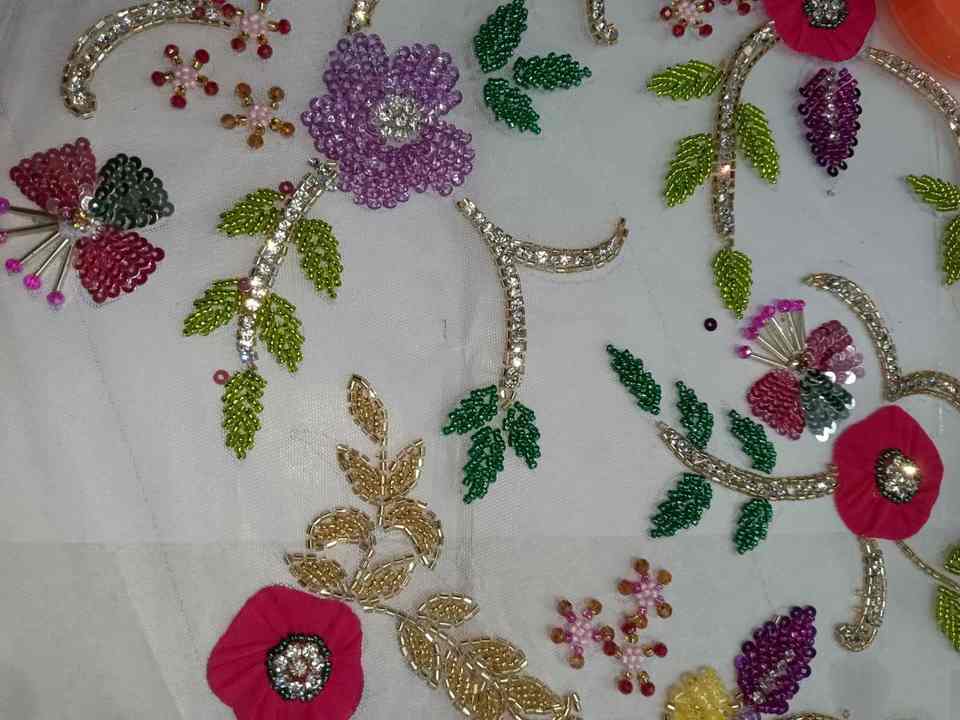 Tela de encaje con cuentas Premium con bordado a mano Ideal para proyectos de Lehenga de diseñador, personalizados y nupciales