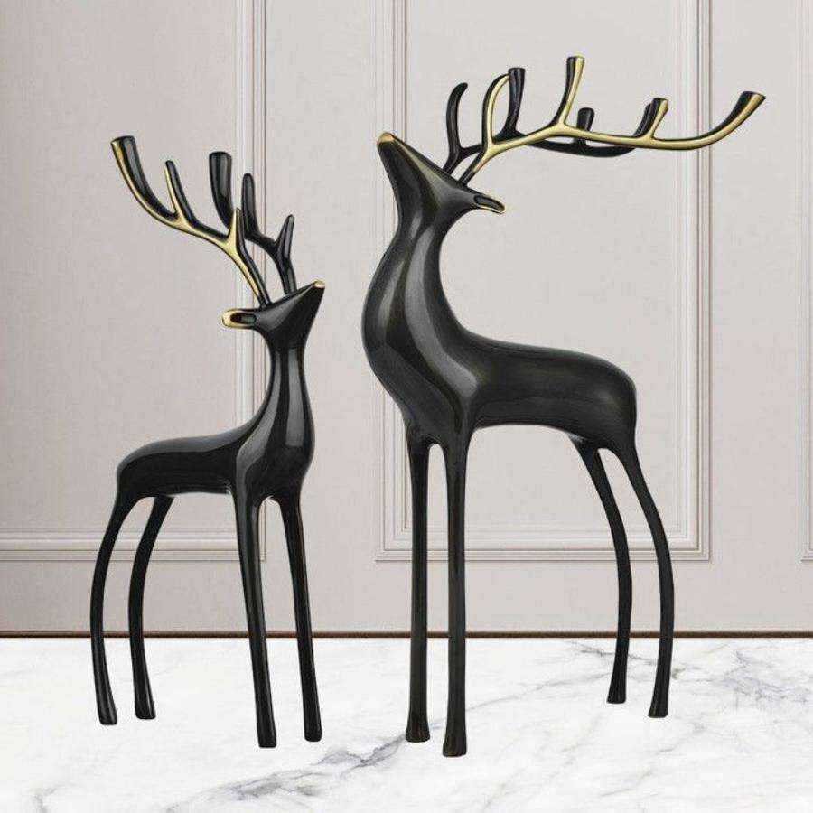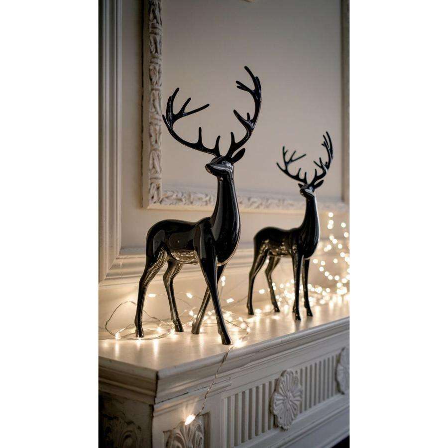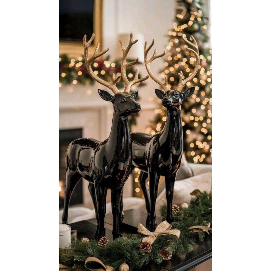 Juego de escultura de Reno negro Premium de 2 suministros de decoración navideña para el hogar Interior escultura de ciervo negro Venta caliente