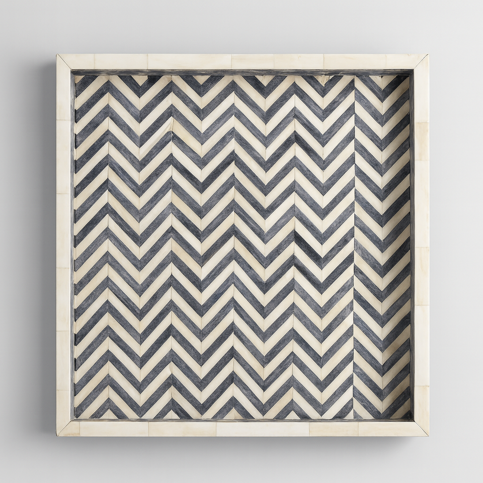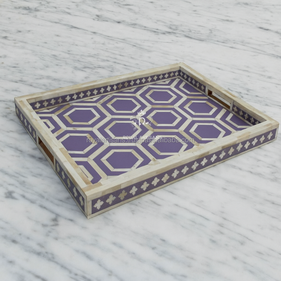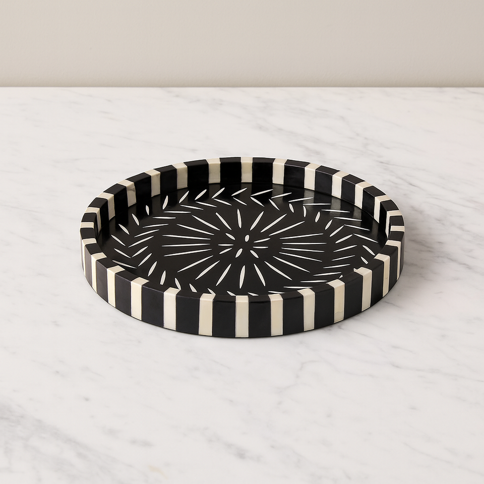 Bandeja Decorativa Premium con Incrustaciones de Hueso, Bandeja de Servicio para Mesa de Centro Hecha a Mano con Incrustaciones de Resina y Asas, Adorno de Lujo para el Hogar