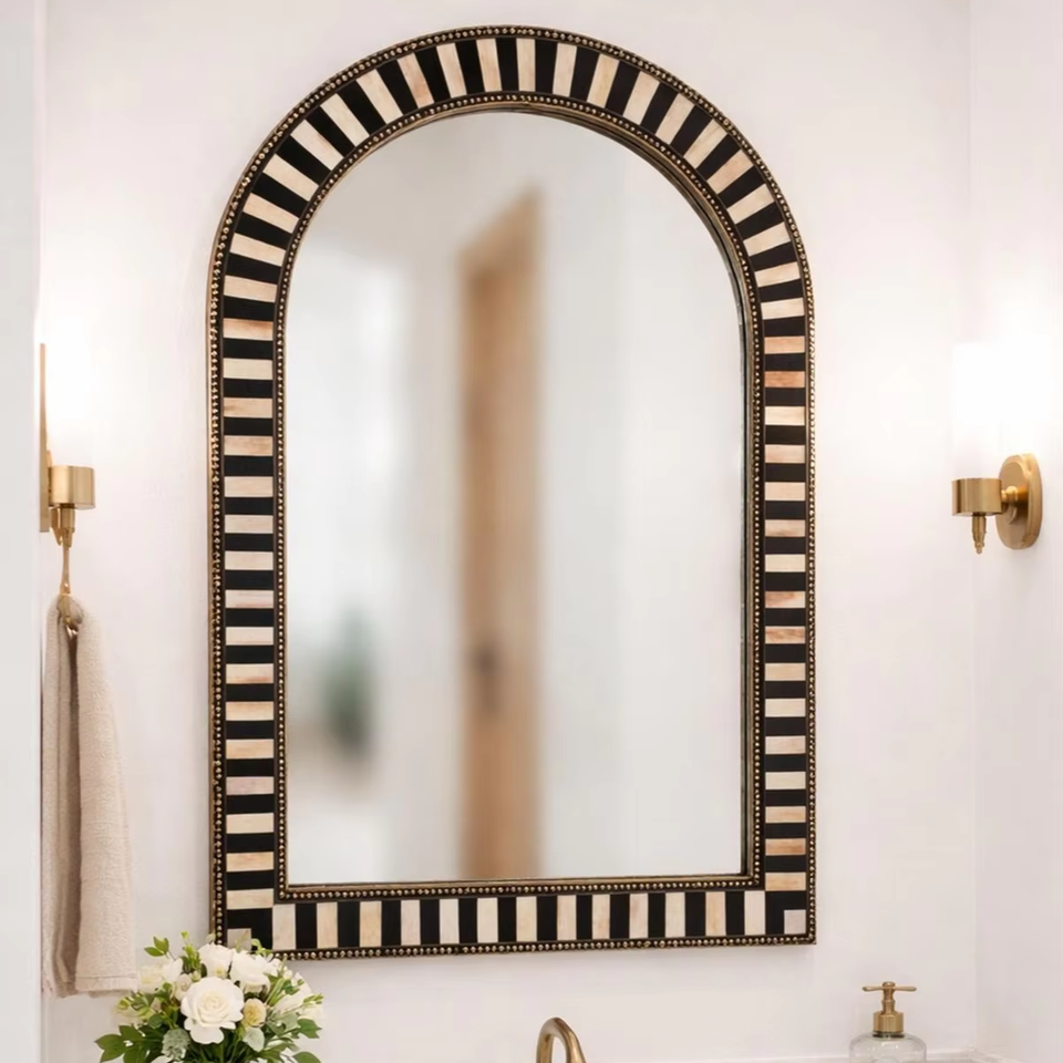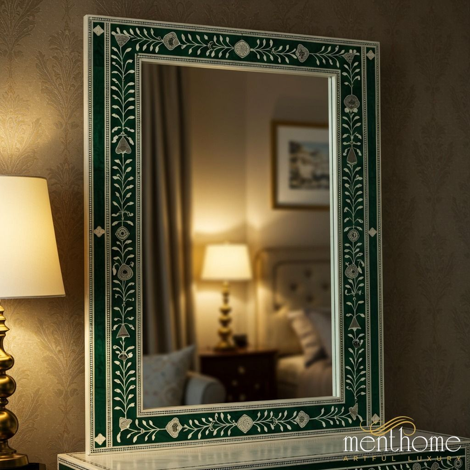 Espejo con Marco de Incrustaciones de Hueso de Primera Calidad, Motivo Floral, Decoración de Pared para Dormitorio, Pasillo o Sala de Estar