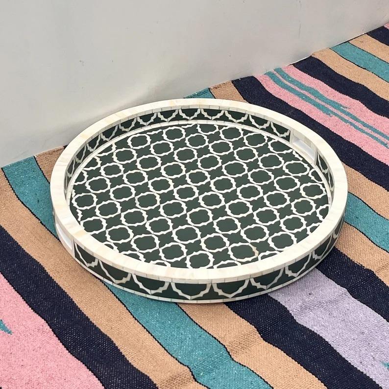 Bandeja de servicio con incrustaciones de hueso Premium para uso diario en el hogar Ocasiones festivas Centro de mesa de comedor y decoración moderna de la India