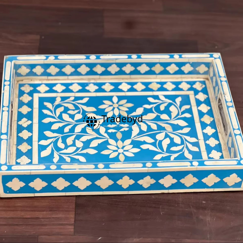 Mesa de Comedor Decorativa Moderna de Primera Calidad con Bandeja Móvil con Incrustaciones de Hueso, por Tradebyd