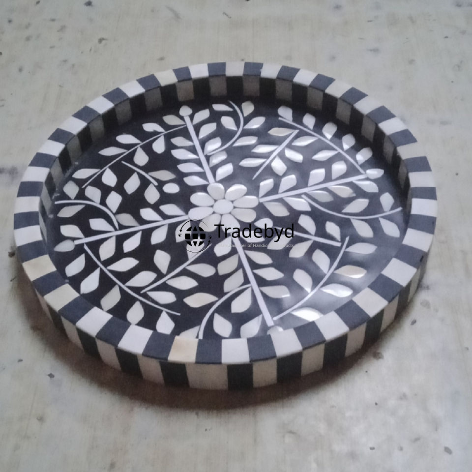 Bandeja Decorativa Premium con Incrustaciones de Hueso, Hecha a Mano, para Mesa, por Tradebyd