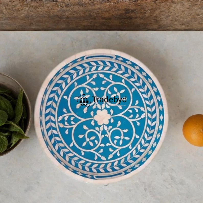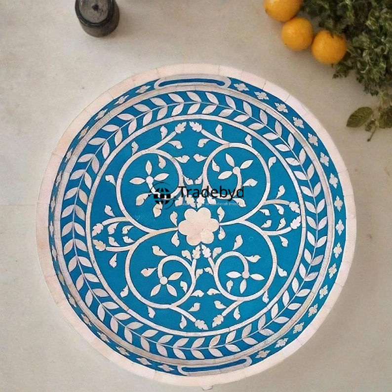 Bandeja de Servir Moderna de Primera Calidad con Incrustaciones de Hueso, Hecha a Mano, Móvil y Elegante, Tradebyd