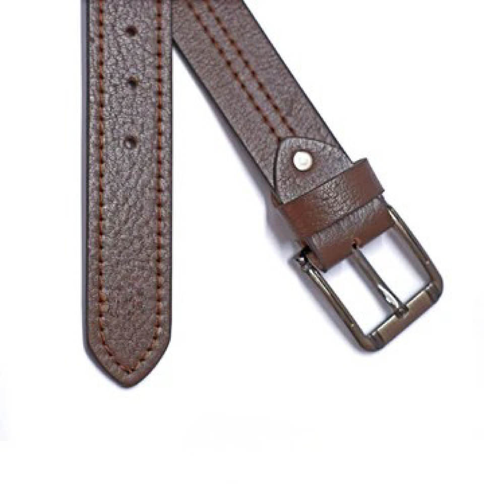 Cinturón de cuero cosido marrón premium