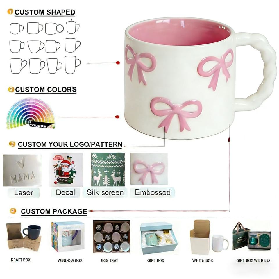 Taza de Cerámica Premium con Logotipo Personalizado, Lazo Rosa, Pedido al por Mayor, Taza de Café para Hotel, Restaurante, Cafetería
