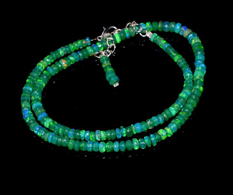 Palabras clave:Collar de cuentas de ópalo verde radiante brillante piedra iridiscente con juego