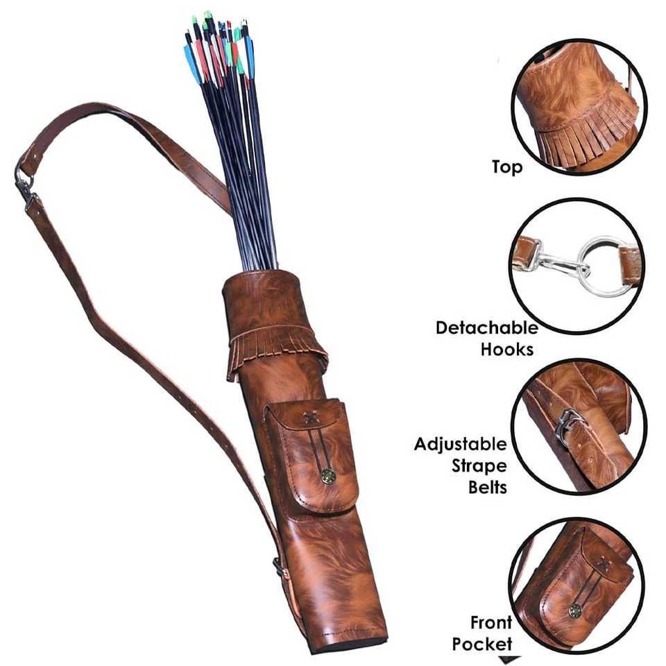 Carcaj de Caza Clásico de Cuero Premium, Compacto, Hecho a Mano, Carcaj Lateral Vintage de Lujo, Color y Logotipo Personalizables