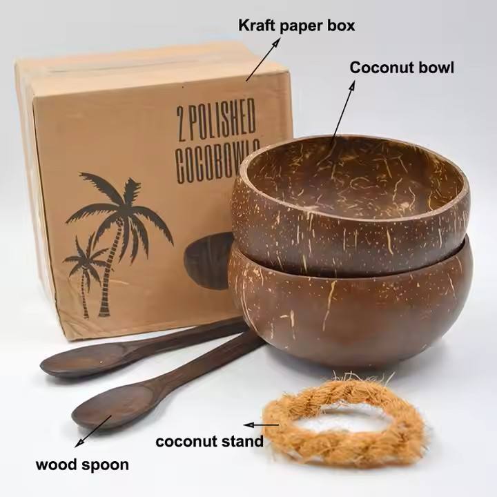 Tazón y cuchara de coco Premium Tazón de cáscara de coco Tazón de coco Fruta hecha a mano con 100% Natural Hecho en Vietnam