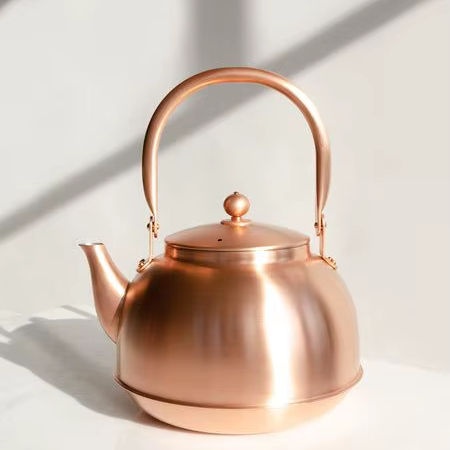 Hervidor de cobre premium para hervir agua y como pieza decorativa de cocina con artesanía artesanal de estilo vintage.