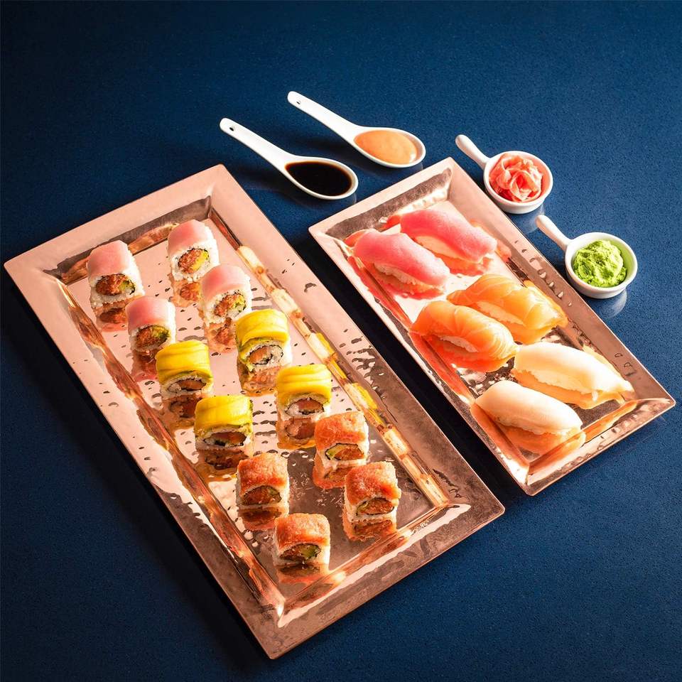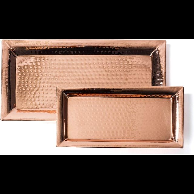 Plato de bandeja martillada de cobre Rectangular de calidad de cobre Premium para servir platos té café hogar restaurante clubes