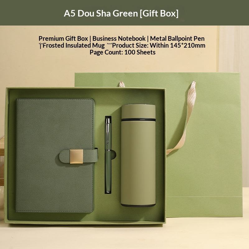Set de Regalo Corporativo Premium, Libreta de Cuero con Logotipo Personalizado y Vaso de Acero Inoxidable con USB, Idea de Regalo Corporativo de Lujo