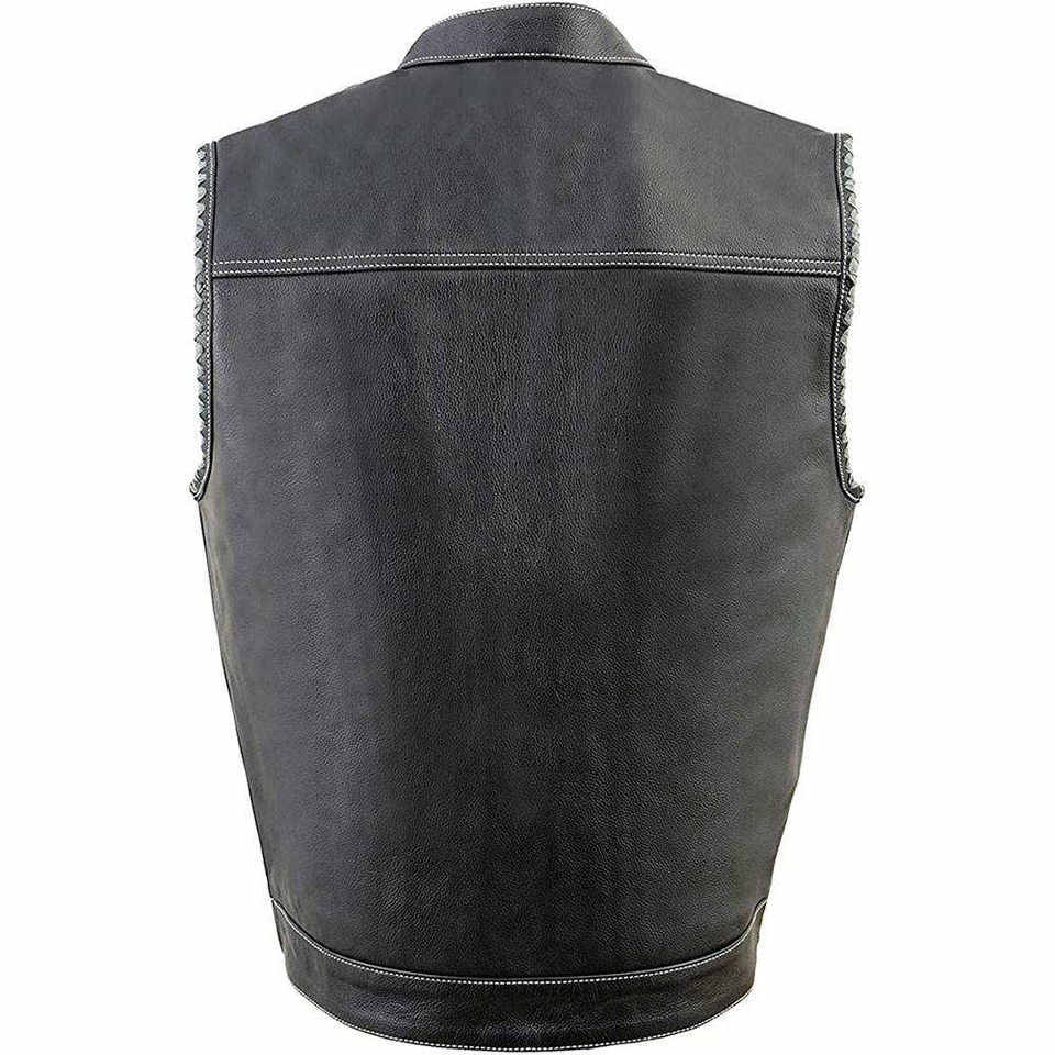 Chaleco de Motocicleta de Cuero Vacuno Premium con Cierre de Cremallera | Ropa de Motociclista Casual para Hombre | Suministro ODM Impermeable y Resistente al Viento