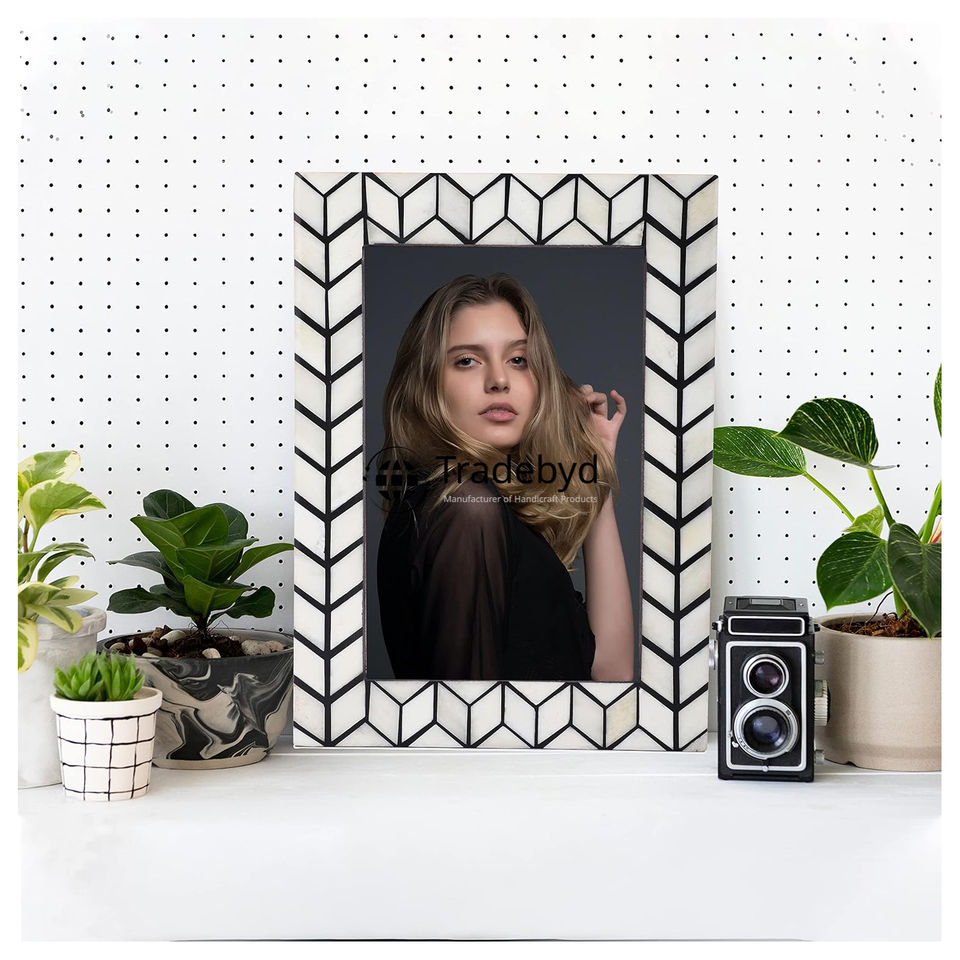 Marco de Fotos Creativo Premium con Incrustaciones de Hueso, Hecho a Mano, Acabado Brillante, Ligero, Opción de Logotipo Personalizado por Tradebyd