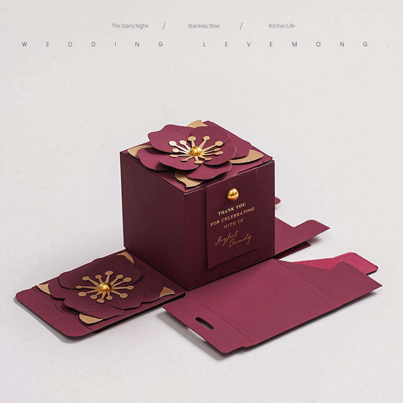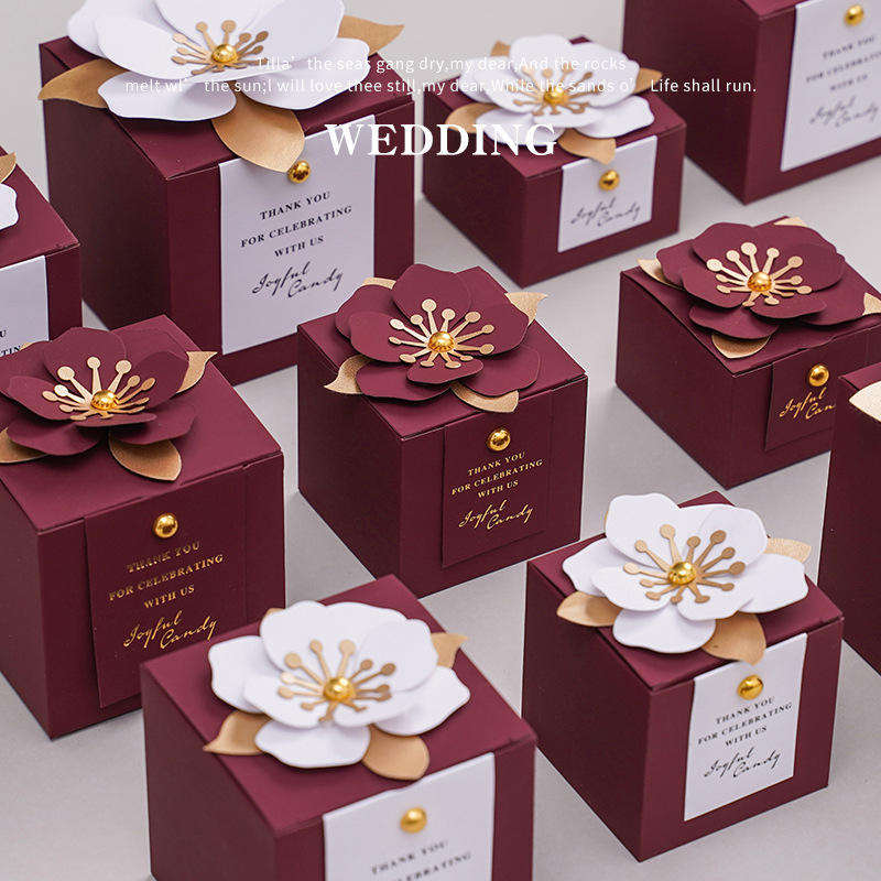 Caja de Regalo Cuadrada de Color Rojo Vino, Creativa y de Alta Calidad, para Dulces, Bodas, Fiestas, Navidad, Estilo Nochebuena