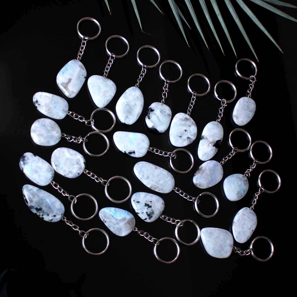 Piedra:Llavero de amatista, labradorita y piedra lunar