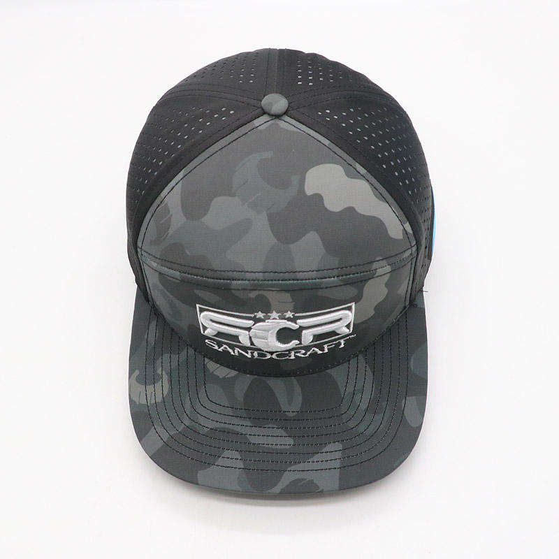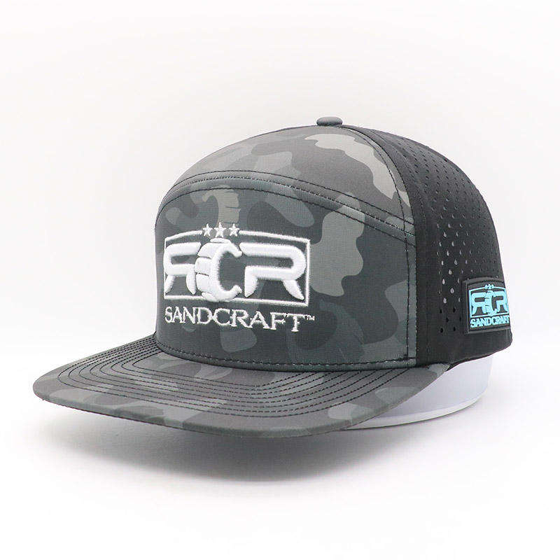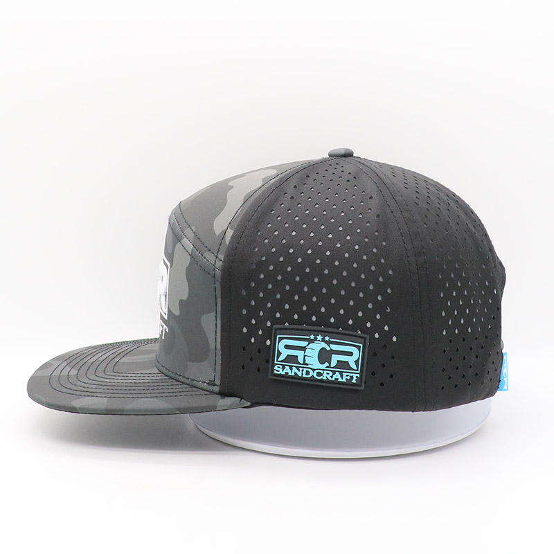 Gorra de Béisbol Premium Personalizada de 7 Paneles, Color Gris, Visera Plana, con Corte Láser y Bordado a Mano, Impermeable, para Uso Diario Deportivo