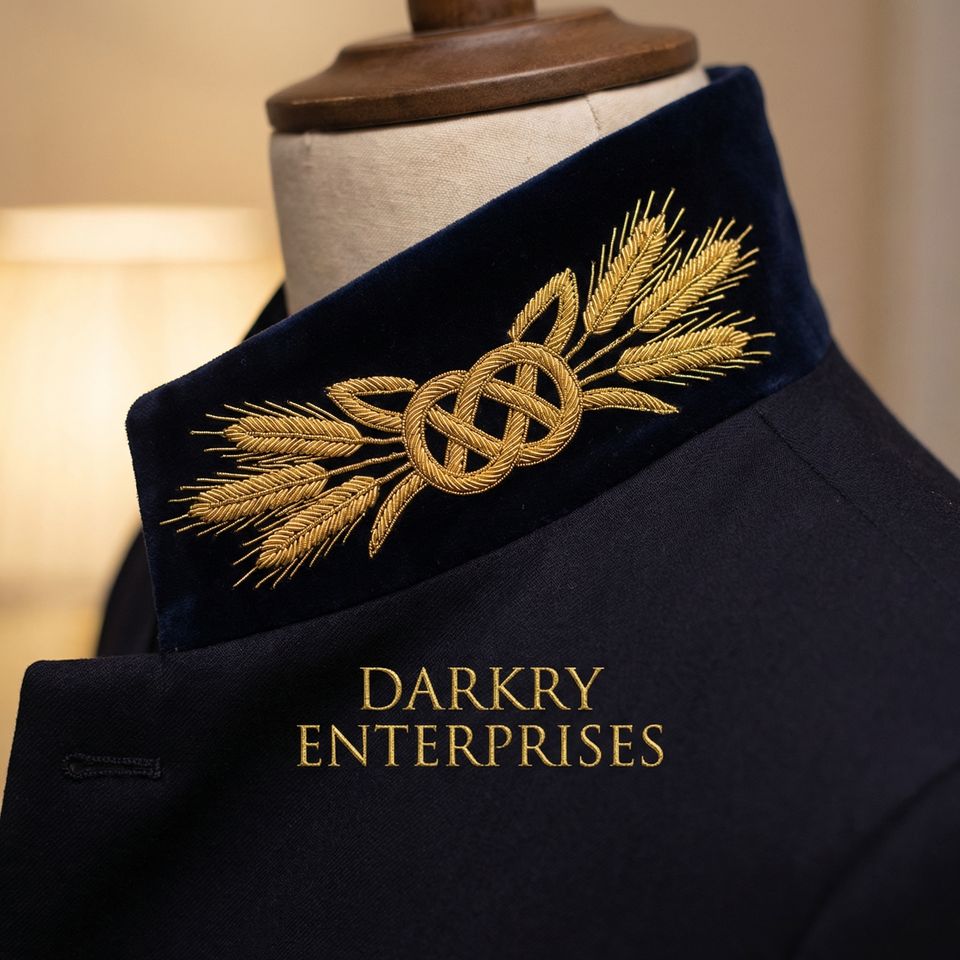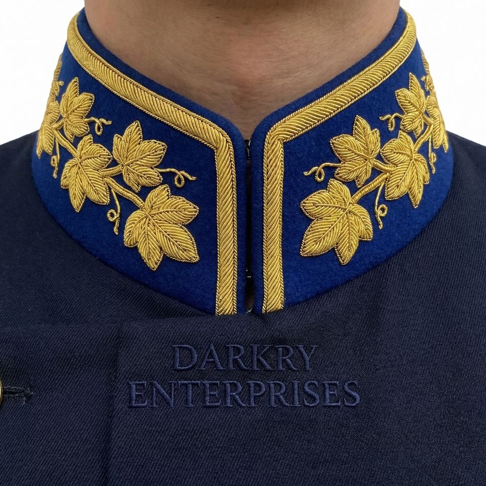 Collar de terciopelo azul con bordado de lingotes de oro hecho a mano, de primera calidad, fabricación a medida.