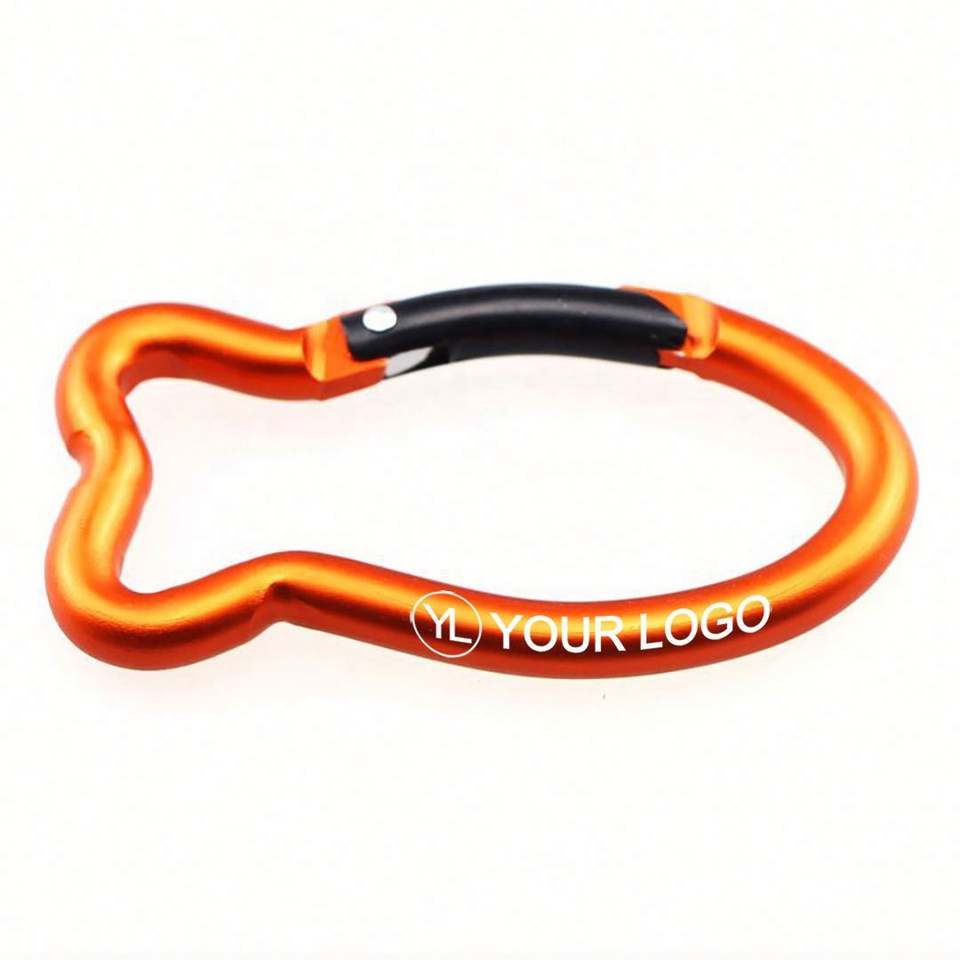 Llavero de Aleación de Aluminio Resistente con Diseño de Pez Dorado Grabado con Láser y Logotipo Personalizado, para Uso Deportivo y al Aire Libre, con Mosquetón de Resorte