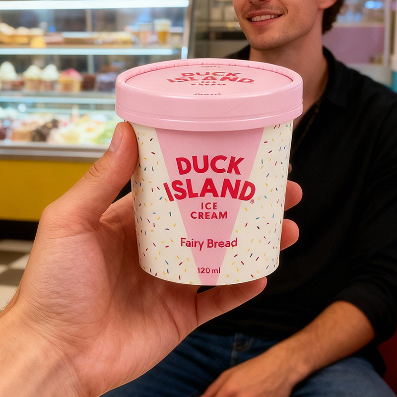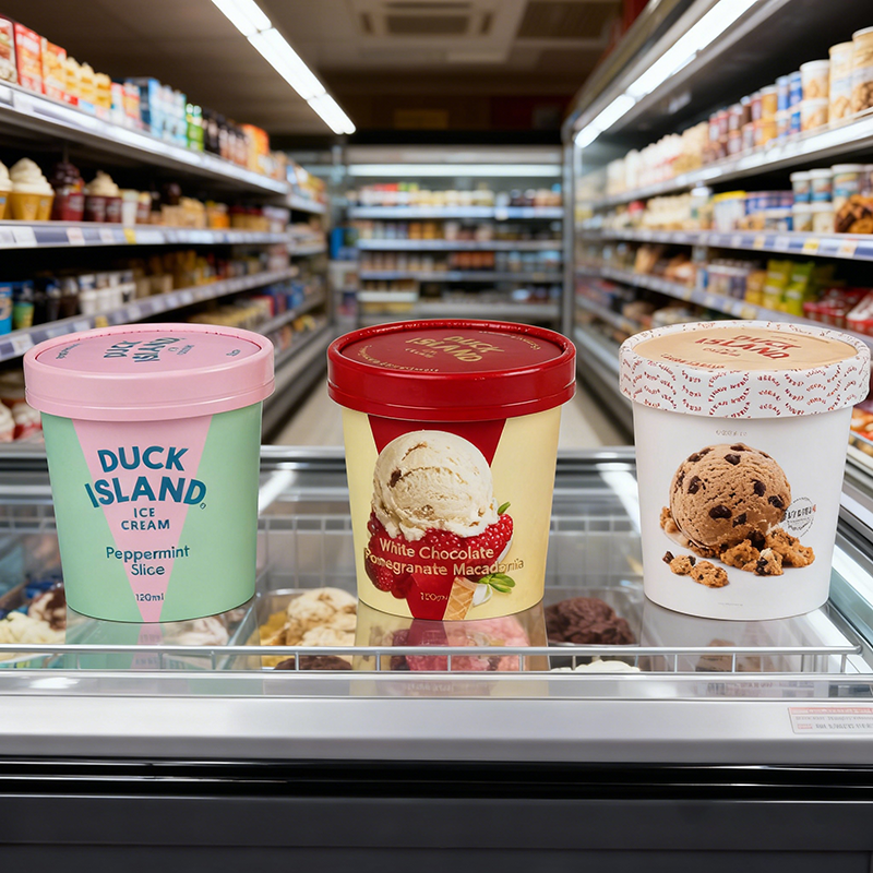 Tarrina de papel para helado de 2oz-20oz con revestimiento apto para congelador, con logotipo personalizado premium y tapa de PET, PE, PP, PLA o Aqueous para camión de comida.