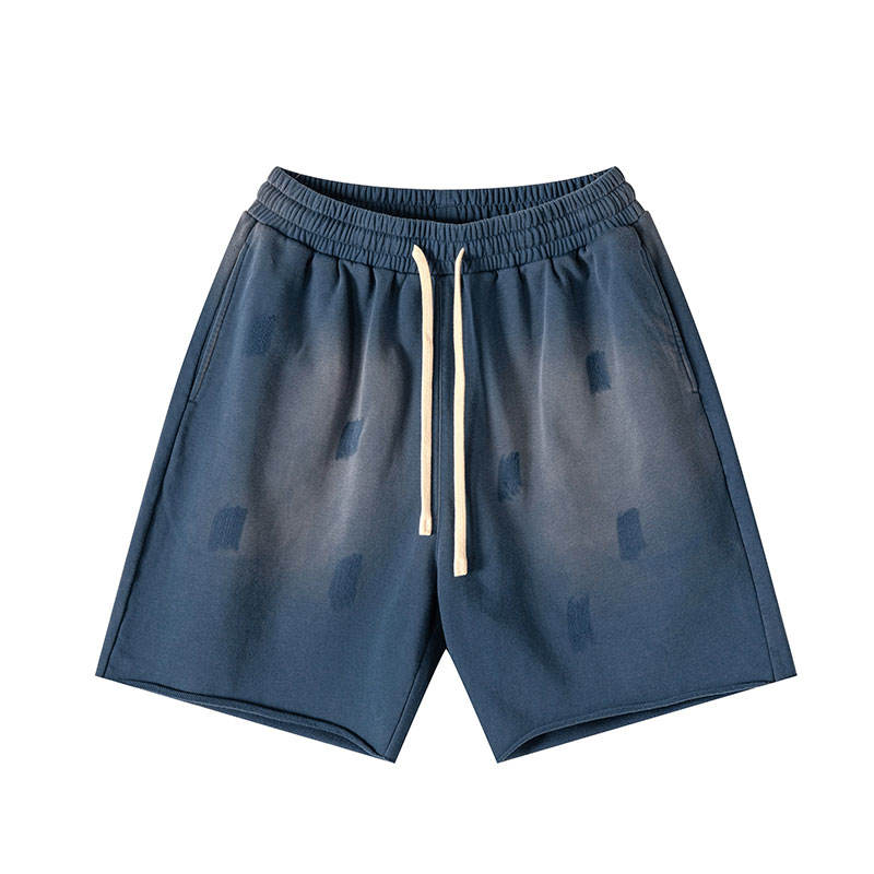 Pantalones cortos lavados con ácido de algodón y poliéster 300GSM con logotipo personalizado de primera calidad, pantalones cortos informales de talla grande Unisex de Color sólido para hombre