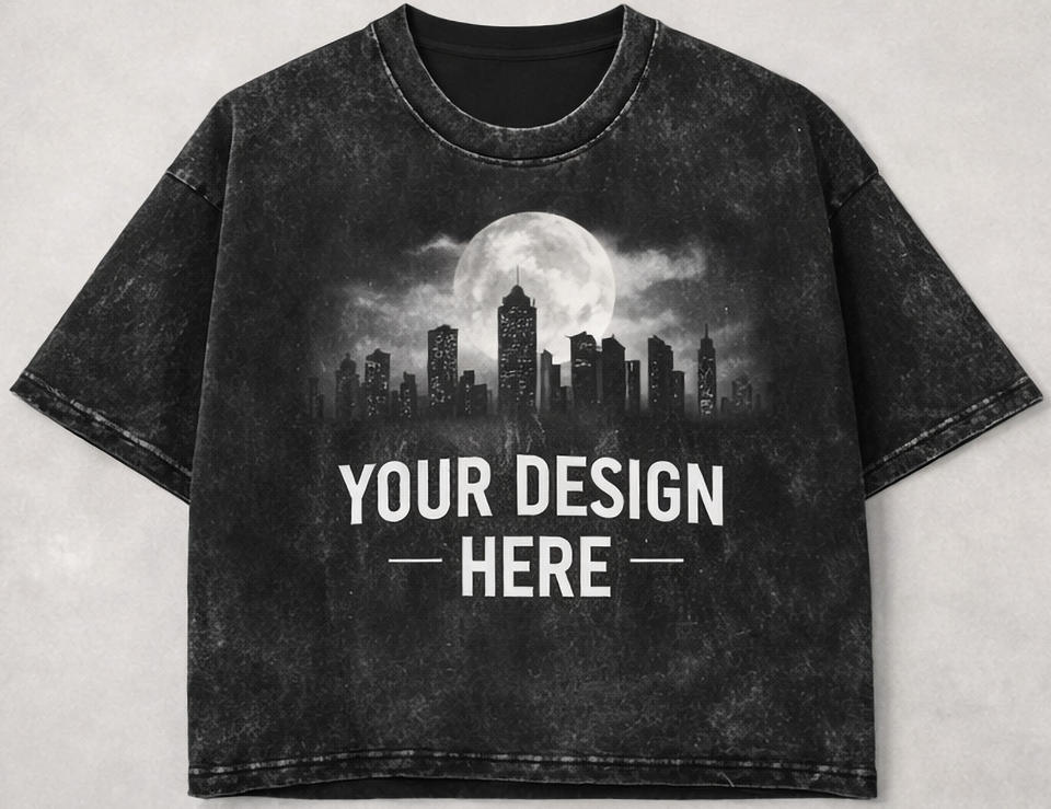 Camiseta Premium Personalizable de Algodón 100% Tejido, Estilo Oversize con Lavado Ácido, Color Negro Vintage, Diseño Urbano con Impresión de Logotipo Personalizado