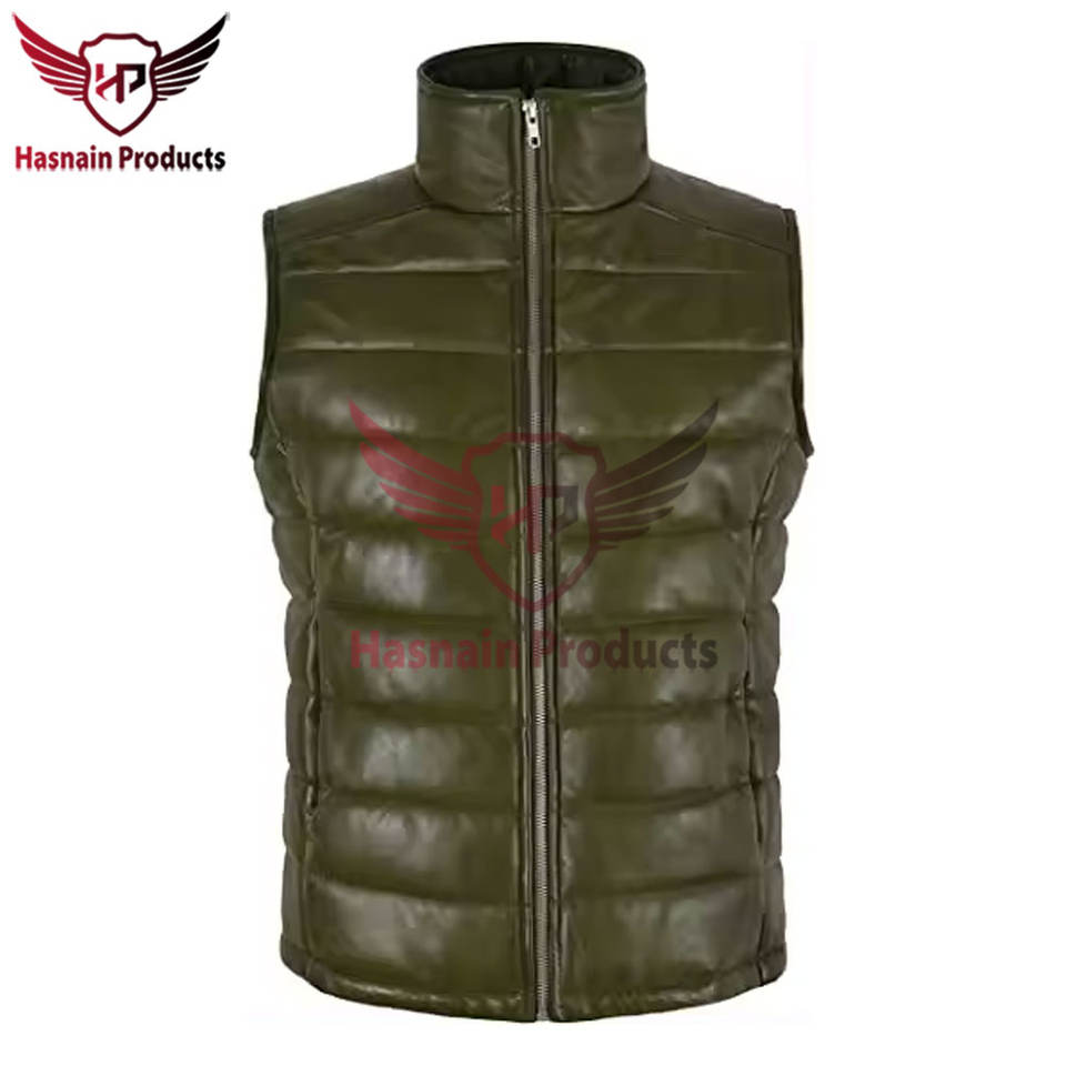 Chaleco acolchado de cuero de estilo motero Premium personalizable para hombre, ropa exterior transpirable de alta calidad para uso informal en invierno