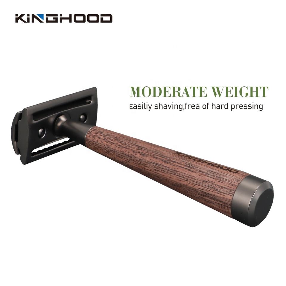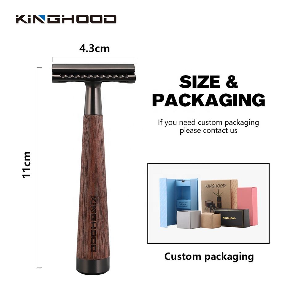 Maquinilla de Afeitar de Doble Hoja de Metal Ecológica con Logotipo Personalizado Premium, Maquinilla de Afeitar Clásica de Madera de Bambú Alemana