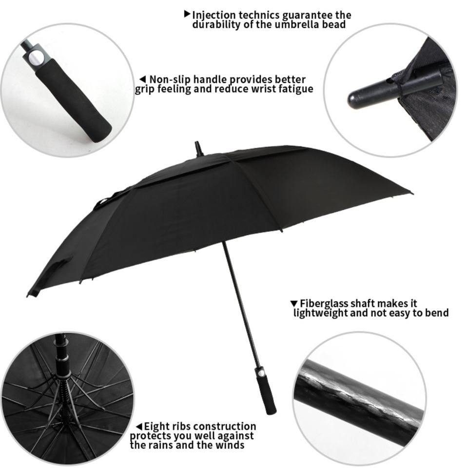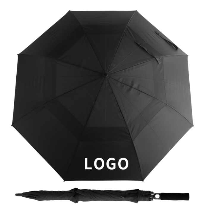 Paraguas de Golf Negro Recto Personalizado Premium Resistente al Viento con Logotipo Personalizado para Campos de Golf y Publicidad Exterior