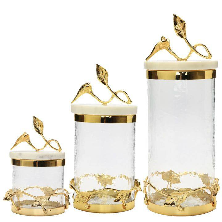 Juego de botes de cocina decorativos dorados/plateados de primera calidad, tarros de vidrio con tapa de loto floral, hermoso diseño para contenedores de almacenamiento