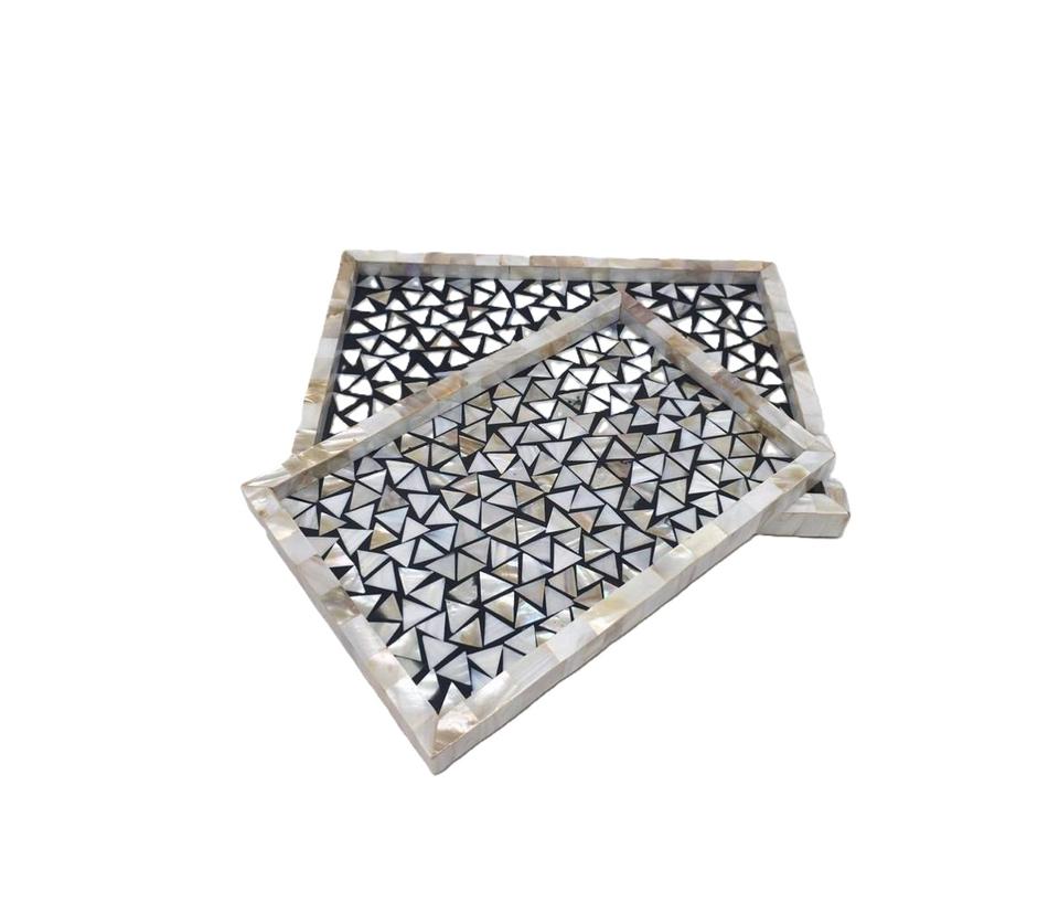 Bandeja de diseño premium con incrustaciones de nácar, bandeja de servir de nácar, bandeja de MDF, bandejas decorativas, bandeja de resina a precio de fábrica al por mayor.