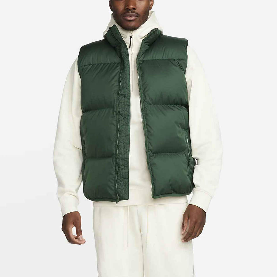 Chaleco Acolchado con Cierre de Diseño Premium en Color Verde Sólido, Tejido Transpirable, Cuello Alto, Relleno de Algodón, Chaquetas Acolchadas para Hombre