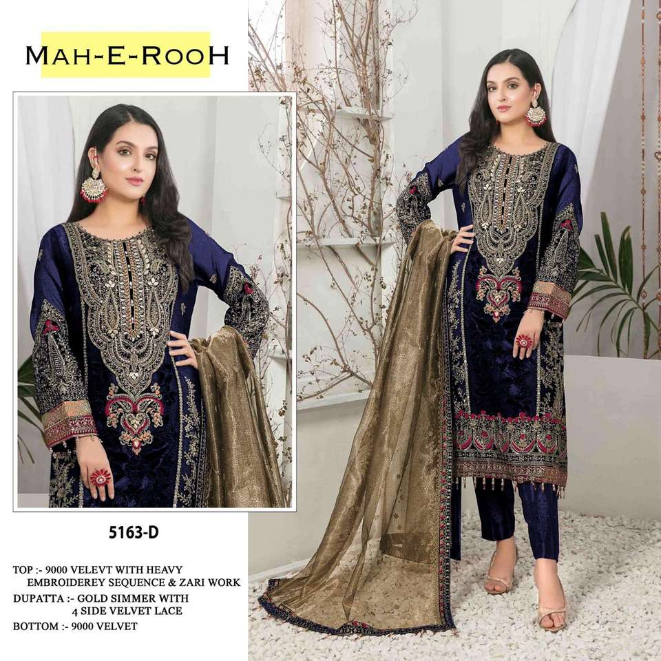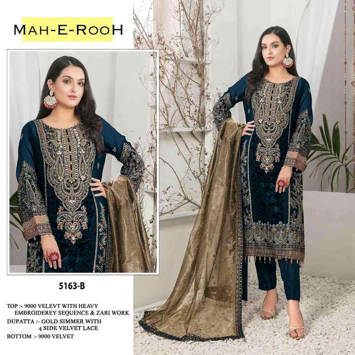 Trajes de terciopelo de diseñador Premium Trabajo de bordado intrincado Estilo formal para Bodas de invierno Fiestas Festivales Ocasiones especiales
