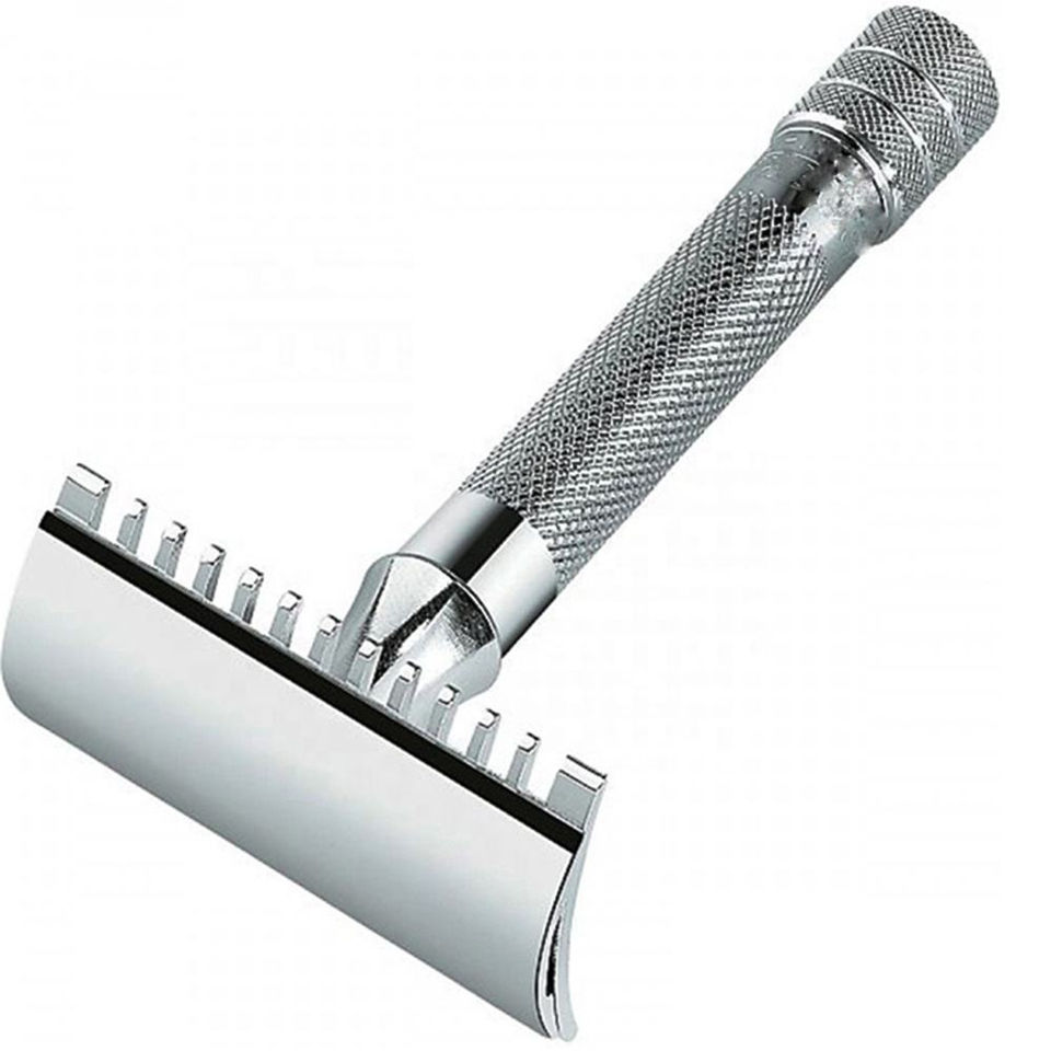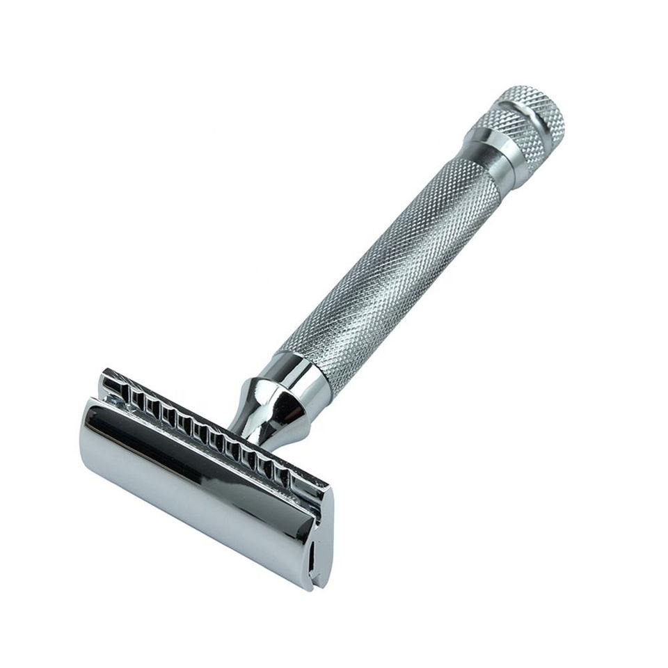 Maquinilla de Afeitar de Doble Filo Premium con Mango de Acero Inoxidable Súper Resistente, Afeitado Clásico para Cara y Cuerpo, Acabado Liso y Duradero para Hombres